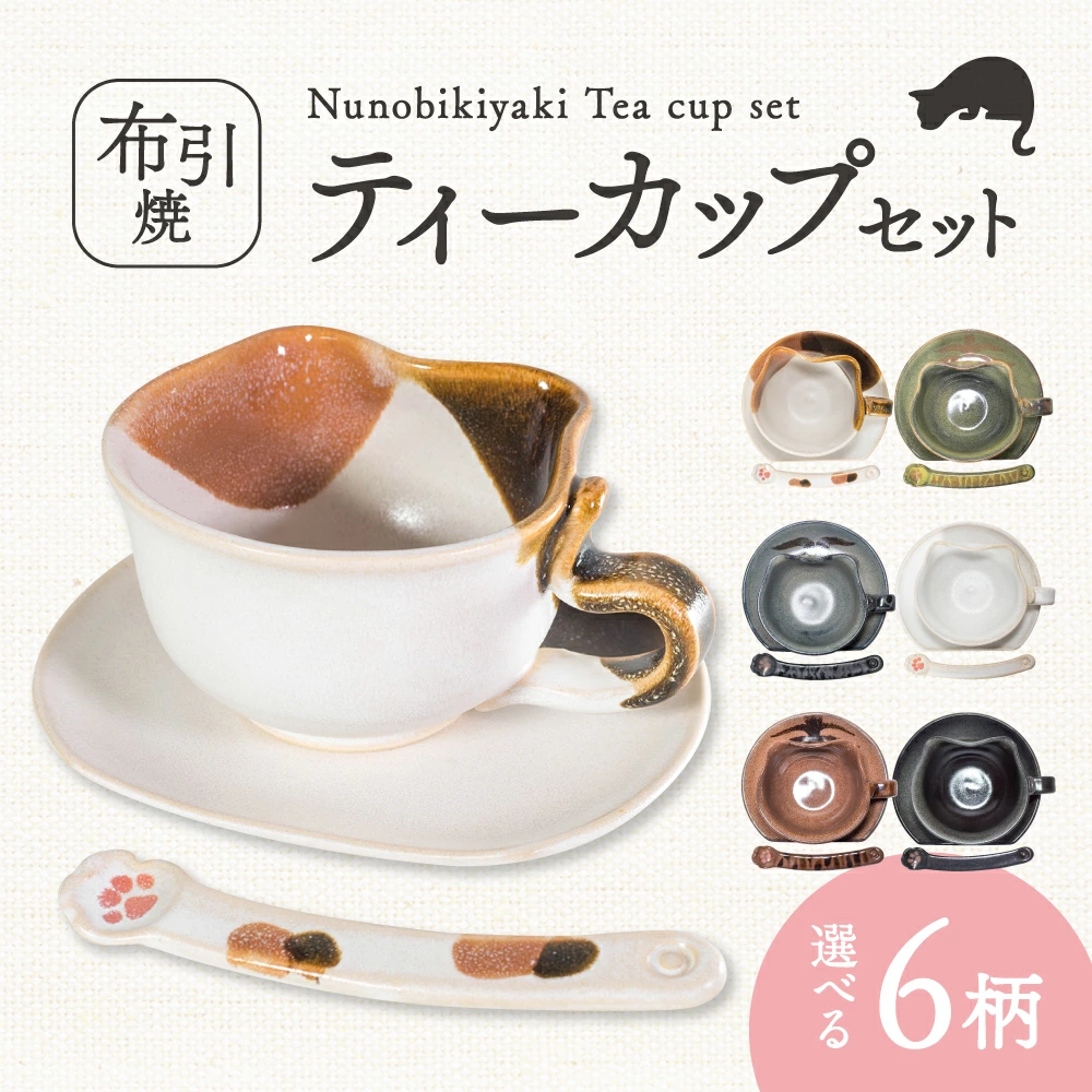 【布引焼窯元】選べる6柄猫柄ティーカップセット